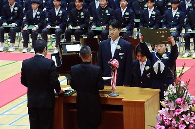 厳粛な雰囲気の中、堂々とした3年生が乙川中学校を巣立っていきました。