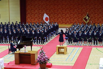 新しく乙川中学校に来た先生たちを校歌で迎えました。
