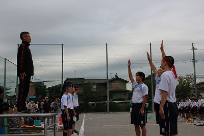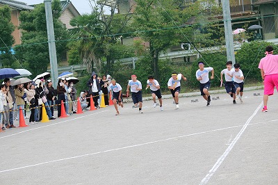小雨の中、どの学年も全力で頑張りました。