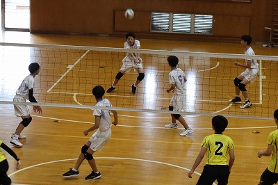 バレーボール部男子が、県大会(岡崎中央総合公園にて)に出場。初戦の名古屋市立神丘中に2対0でストレート勝ち。2回戦の福江中に1セット目を取られるも2セット目を取り返し、ファイナルセットも序盤からリードしましたが最後の最後で逆転され悔しい負けに。よく頑張りました。