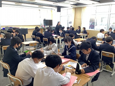 SATで3年生が、先生の経験談を元に、修学旅行で大切にしたいことなどを確認しました。
